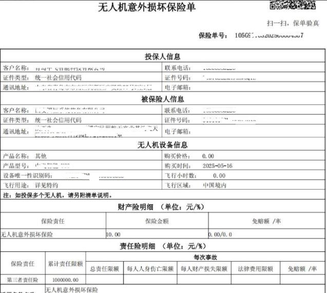 5、无人机购买保险凭证