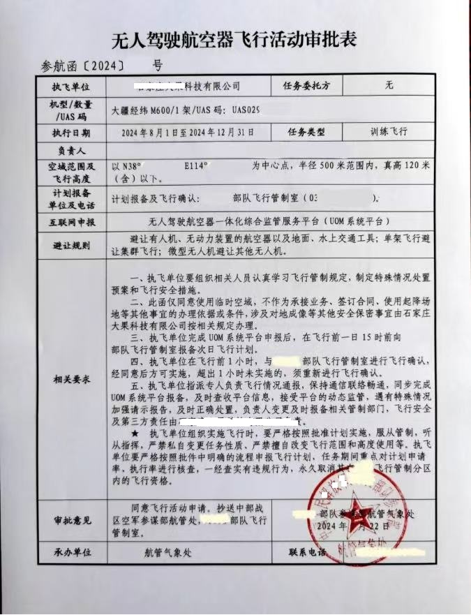 2、线下渠道:涉及管制空域或敏感区域,需同步向军方空管部门提交书面申请;